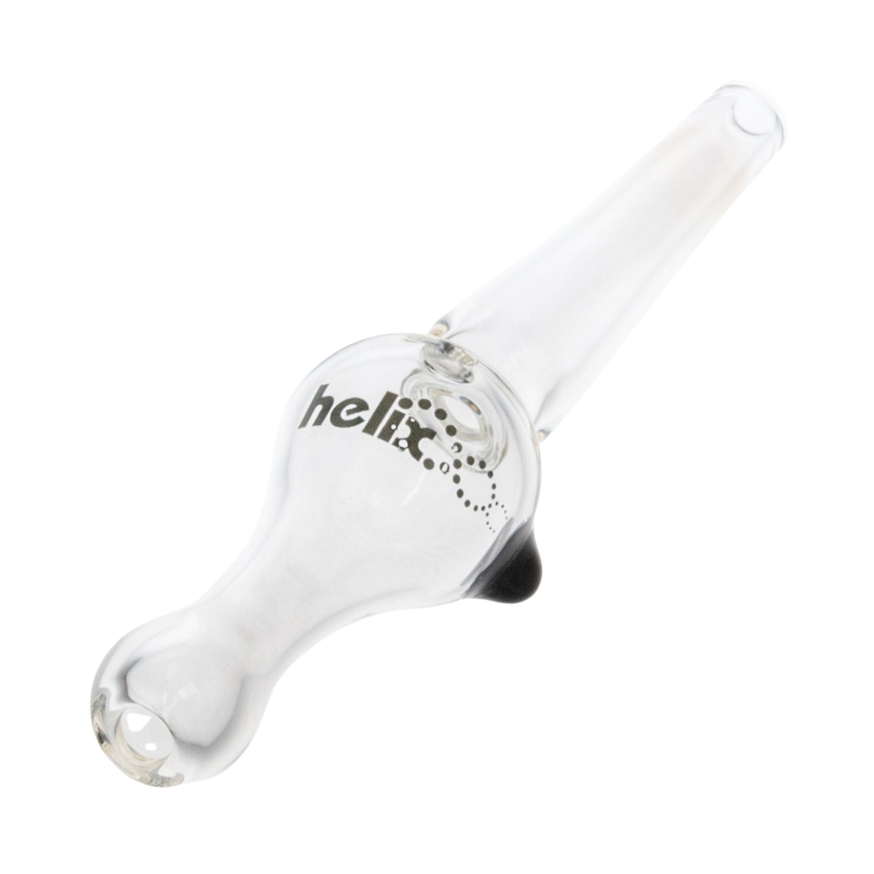 The Helix Solo Scepter is a 6-inch concentrate straw designed with Helix’s patented Venturi cooling system. This single-inlet design creates a swirling airflow that cools vapor for smoother, more flavorful draws. Hand-blown from durable borosilicate glass, the straw is built for portability and daily use. Its extended life tip is crafted to withstand heat, and twirling the straw while heating helps reduce stress on the glass. Available in a variety of decal colors, it combines performance, style, and durability in a compact form.