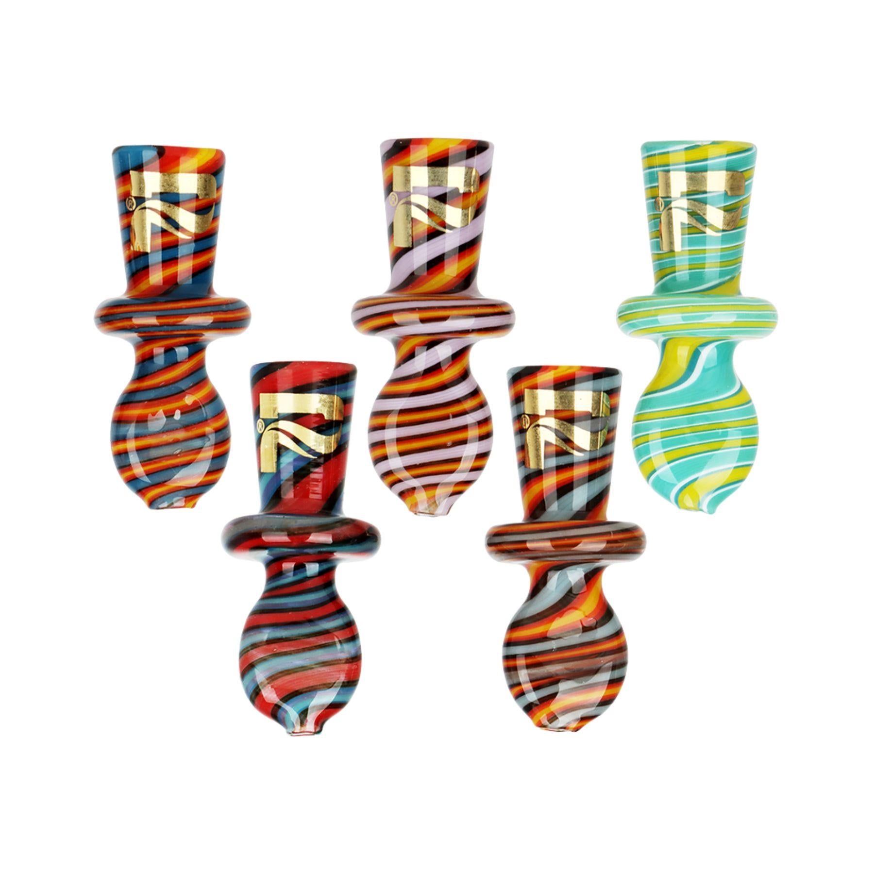 Keep your sessions smooth with the Pulsar Wig Wag Cone/Joint Holder. Measuring just 1.75 inches long, this compact holder makes it easy to enjoy your joints or cones without the struggle of holding them directly. It also helps cool the smoke slightly before it reaches you. Made from durable borosilicate glass, this holder features a colorful wig-wag spiral stripe design accented with a gold Pulsar logo.