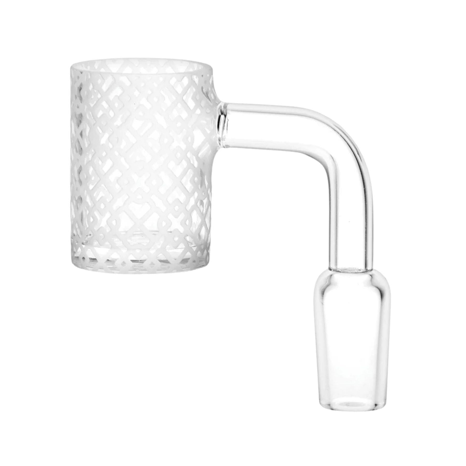 Enhance your dab rig with the Etched Banger! Made entirely from premium quartz material, this standard banger features a flat top design that is compatible with most carb caps and banger inserts available on the market. The unique pattern is etched into the exterior, creating a captivating finish. Each banger has a 90-degree joint angle and a 14mm male joint connection size.