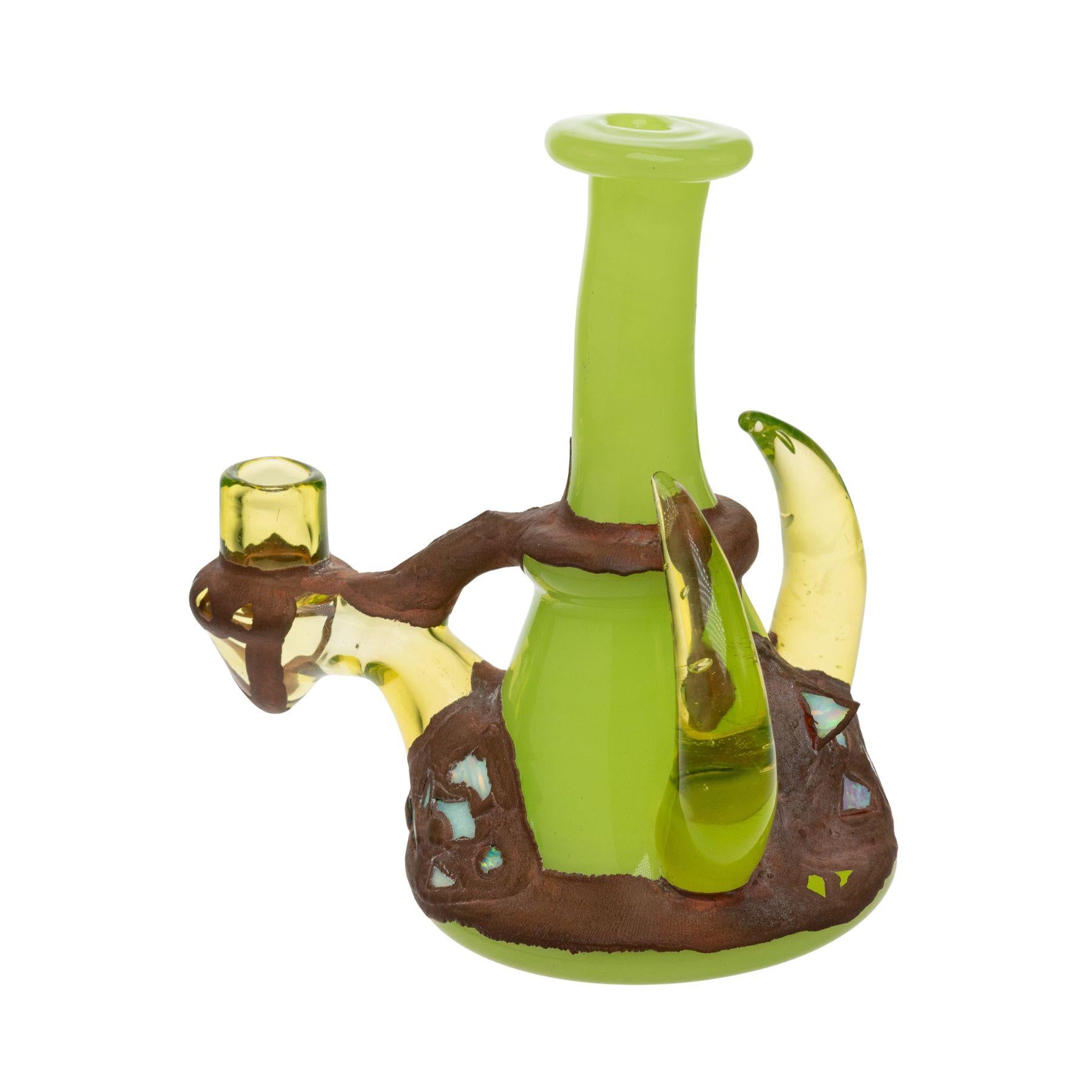 Two green decorative horns extend from each side, offering a unique aesthetic and additional grip support for comfortable handling. Small but mighty, this rig combines artistry and function in one standout piece.