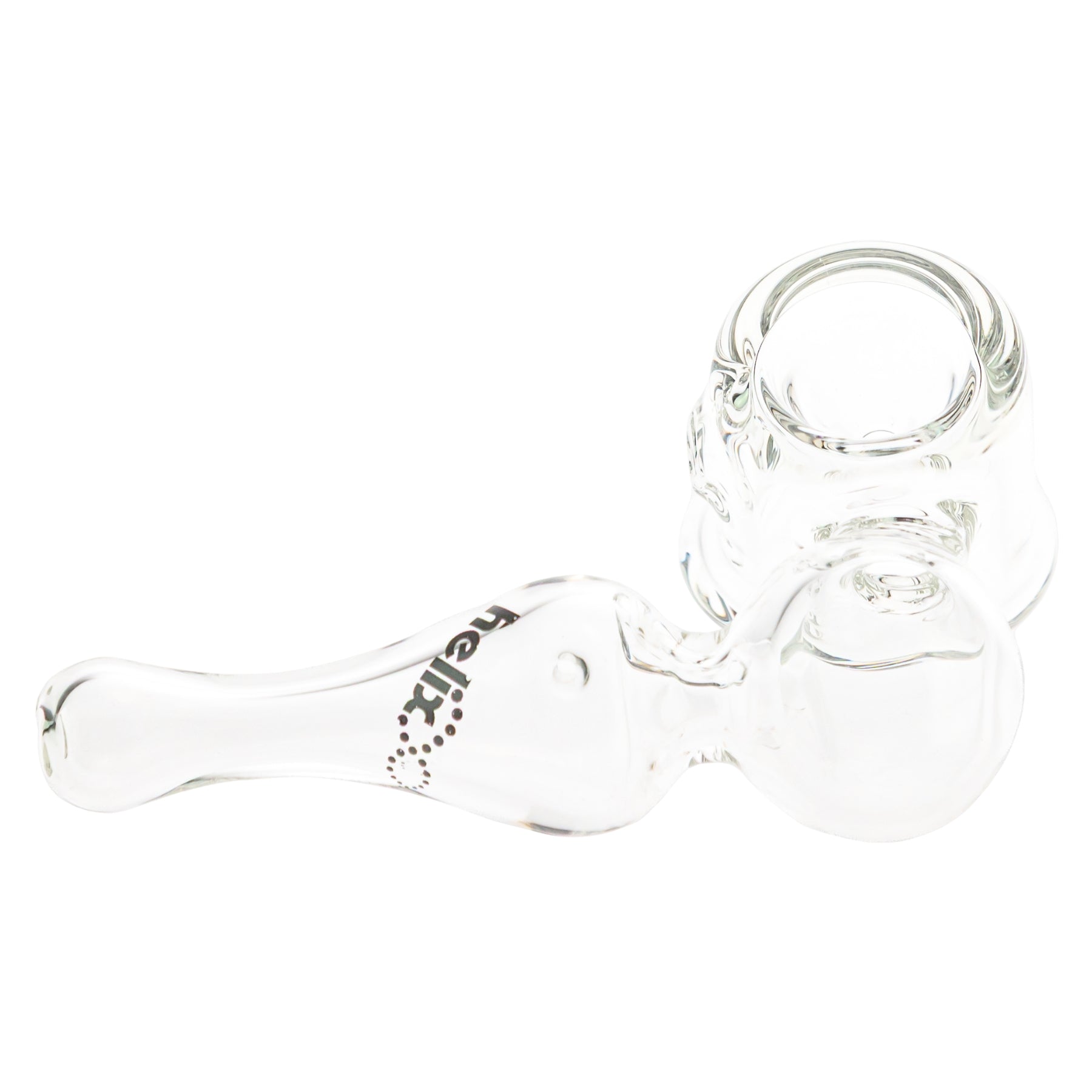 The American Helix Sidecar Pipe is a compact 4.2-inch glass hand pipe designed for smooth, cooled draws in a distinctive sidecar configuration. Crafted from clear, durable glass, this piece features a sturdy flat-bottom base for added stability, a deep bowl for efficient packing, and an integrated helix air pathway that creates a swirling vortex effect to help cool and condition each hit. The angled sidecar mouthpiece helps keep heat away from the face while providing a comfortable, ergonomic grip, and the side carb allows for precise airflow control and easy clearing. Finished with the American Helix logo along the stem, this 4.2-inch pipe combines functional engineering with a clean, modern aesthetic.