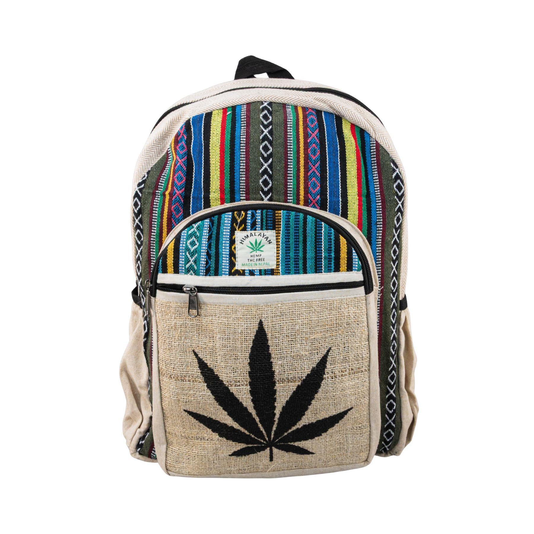 Crafted from sustainable Himalayan hemp, this ThreadHeads Black Leaf Colorful Stripes Backpack blends eco-friendly materials with bold design. The backpack includes two front zippered pockets, two elastic side pockets, a padded laptop sleeve, and adjustable shoulder straps for comfort.