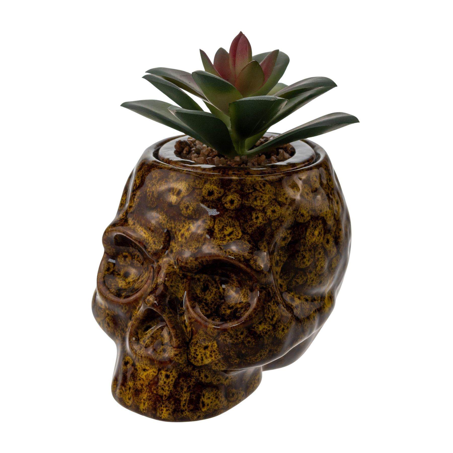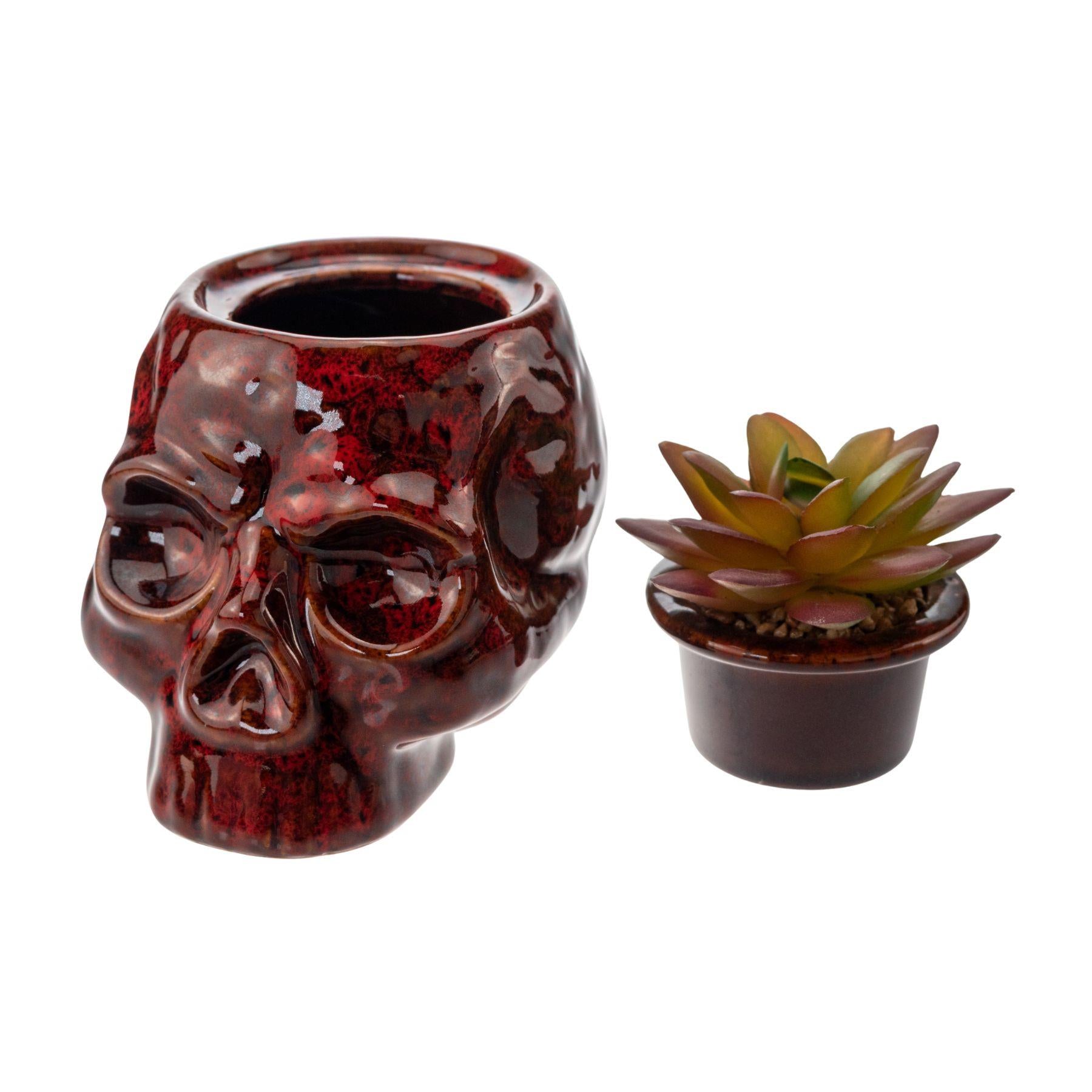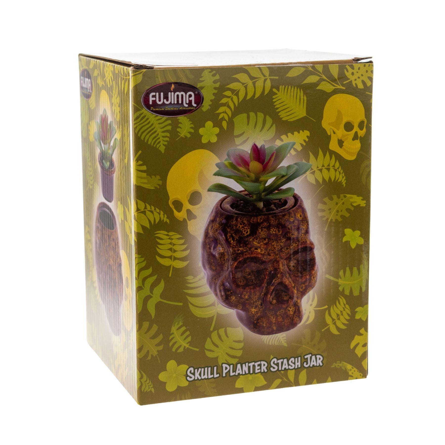 The Fujima Skull Planter Stash Jar combines bold style with practical storage. Crafted from vibrant ceramic, this 4.5-inch skull-shaped jar makes a striking decorative accent while keeping your items secure.