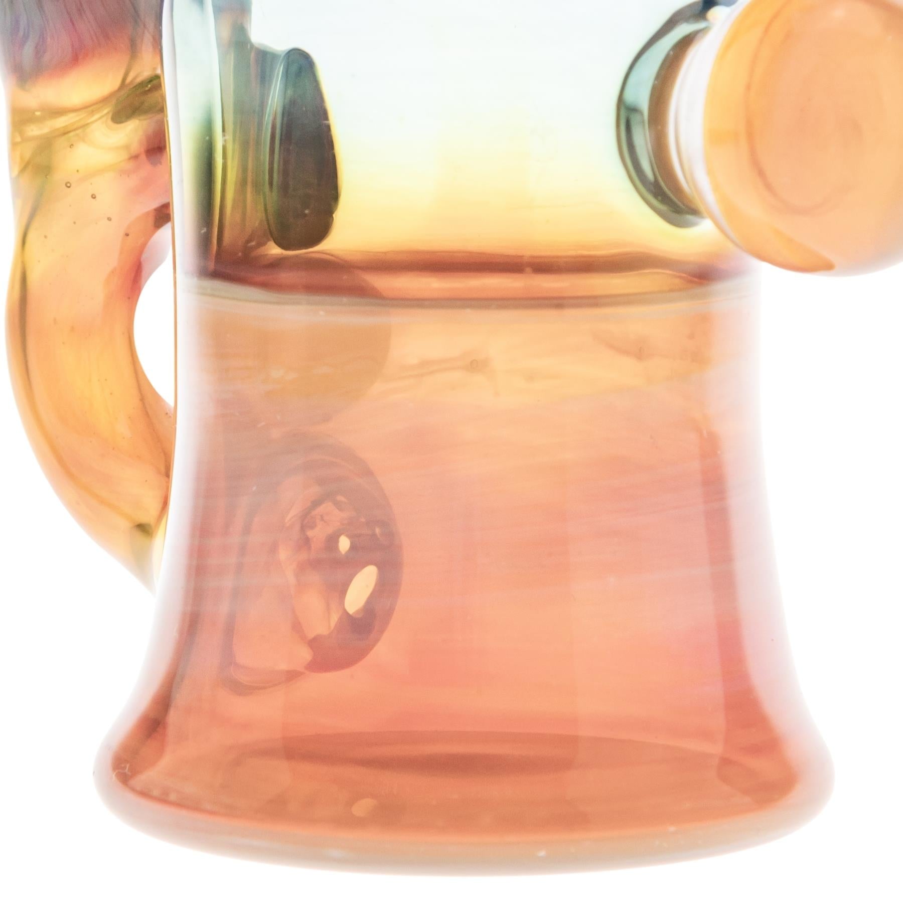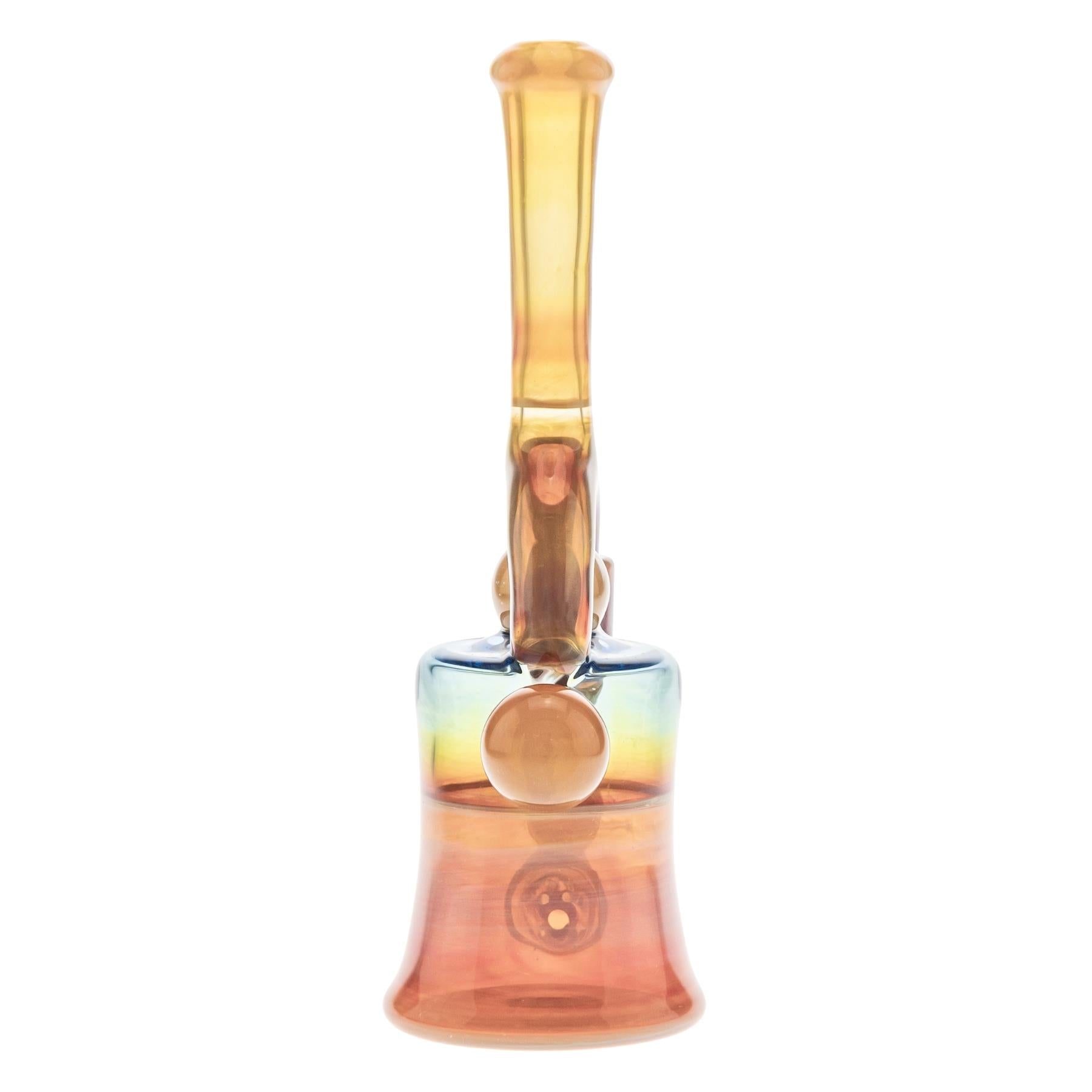 This 7” GK Coilpot Fumed Bubbler features a 2.3” body diameter and a 10mm slide joint. The fumed glass shifts in color with use, developing deeper gold, peach, and rainbow tones over time. Its compact coilpot-style body offers smooth water filtration in a balanced, easy-to-hold design. Functional, eye-catching, and full of character, this piece is built for both daily use and display.