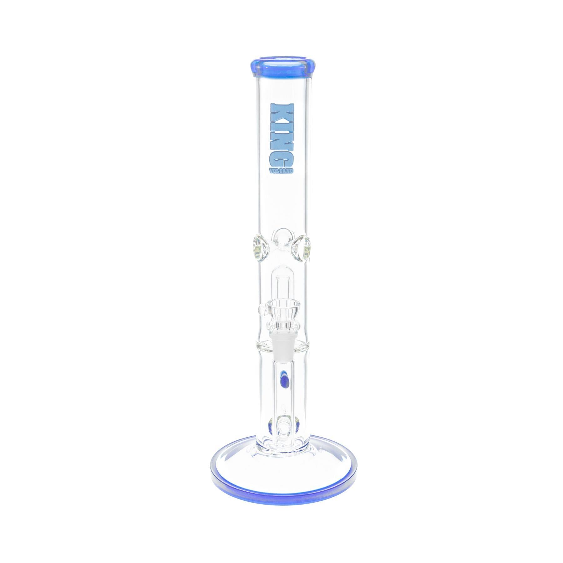The King Volcano 44mm x 12in Flare Water Pipe delivers powerful performance with clean, consistent hits. Crafted from 5mm American-made glass, it features a fixed diffused downstem and a showerhead percolator for superior filtration. The three-prong ice catcher provides smooth, cool draws, while the wide 5-inch base ensures stability. Standing 12 inches tall, this water pipe combines durability, balance, and classic craftsmanship for an elevated smoking experience.