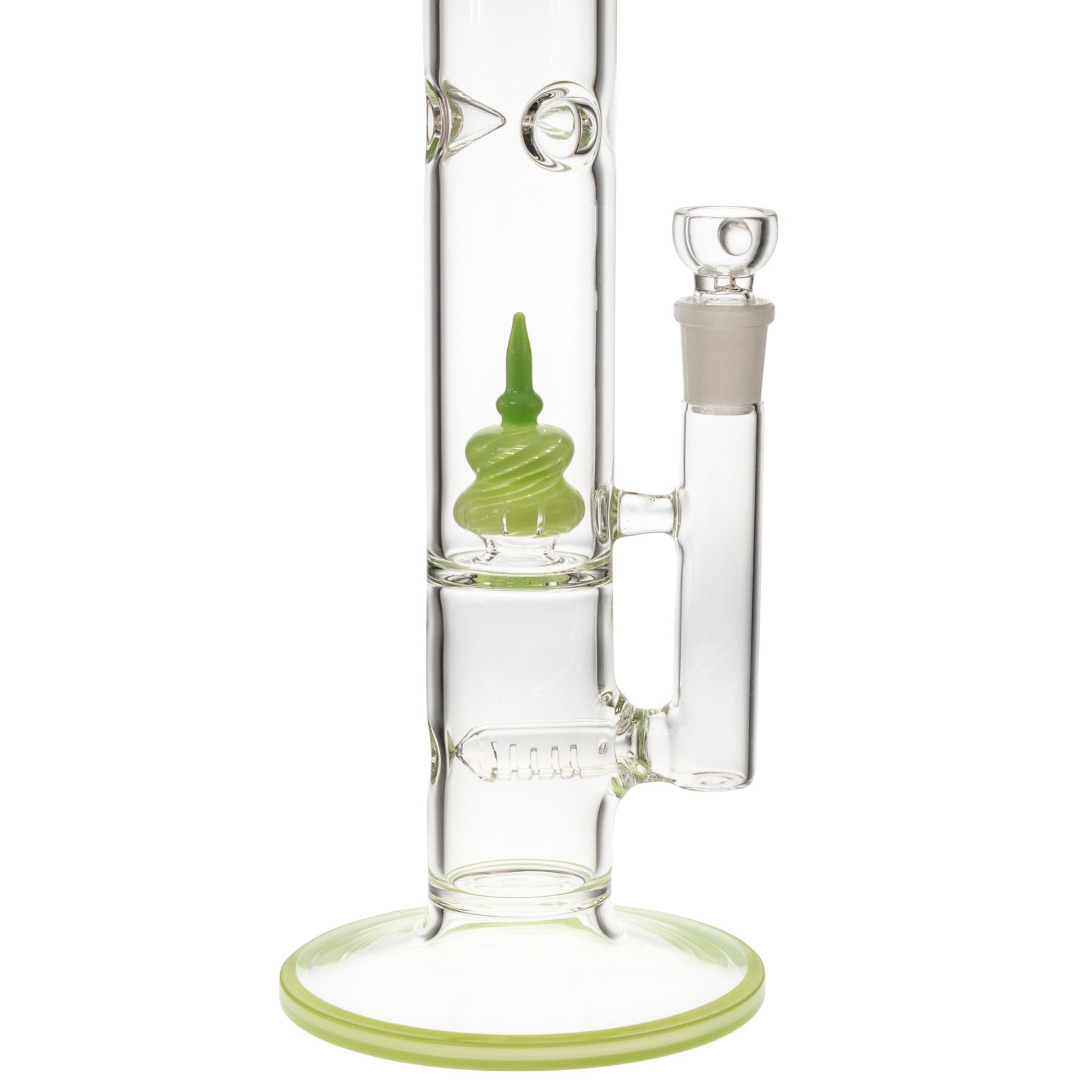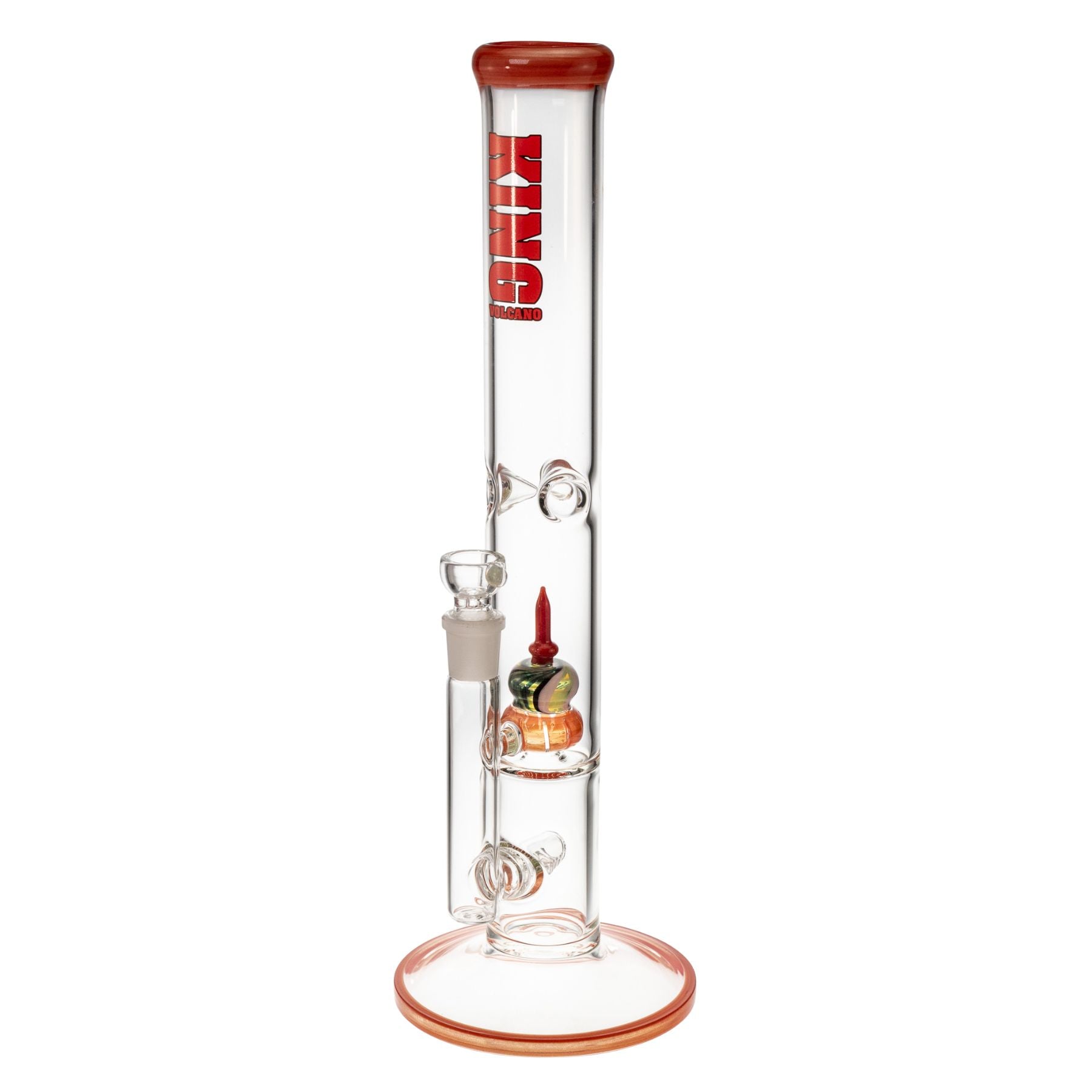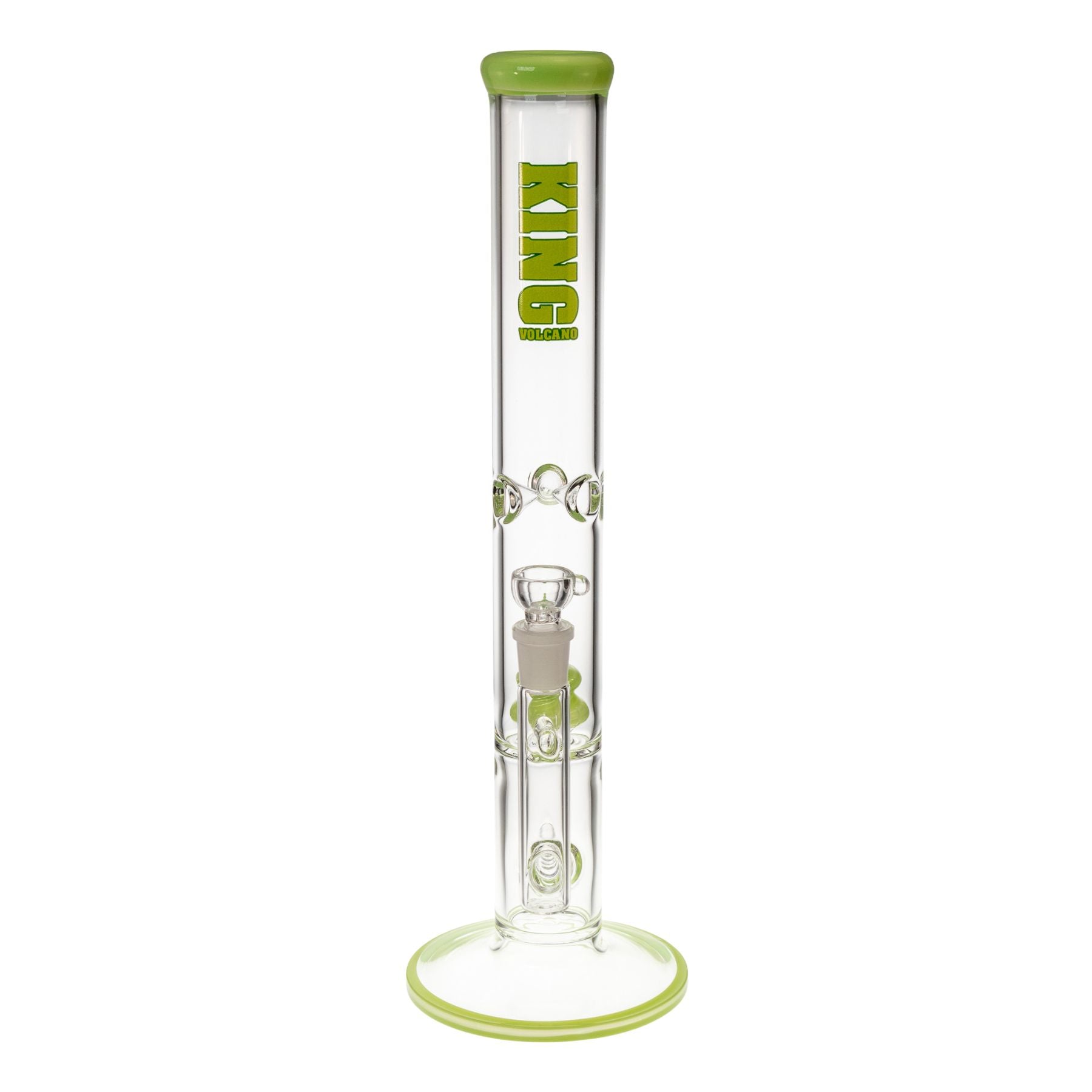 Elevate your smoking experience with the King Volcano 50mm x 15'' Double Wrap Flare. Standing 16.5 inches tall with a 50mm body diameter and 5mm wall thickness, this durable glass water pipe is built for both performance and style. It features a diffused fixed inline for smooth filtration and a colorful showerhead percolator that adds visual flair while enhancing each hit. The three-prong ice pinch allows you to cool your smoke for an even smoother pull, and the wide 5.25-inch base provides extra stability. Crafted for those who value both quality and design, the King Volcano Double Wrap Flare delivers a refined smoking experience every time.