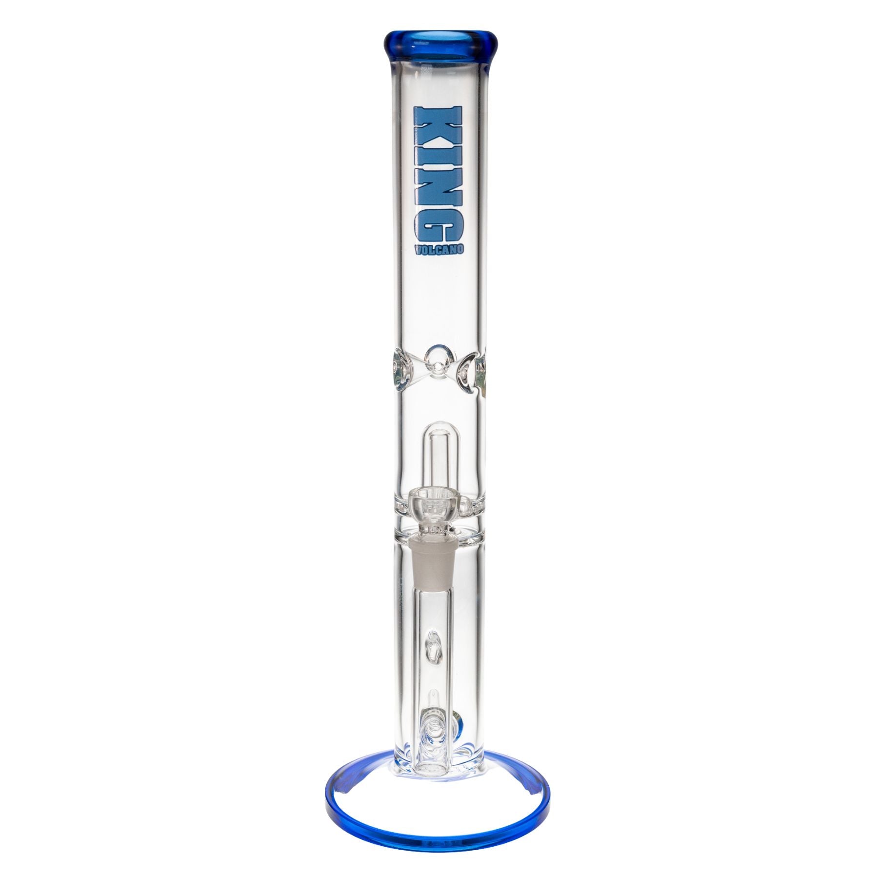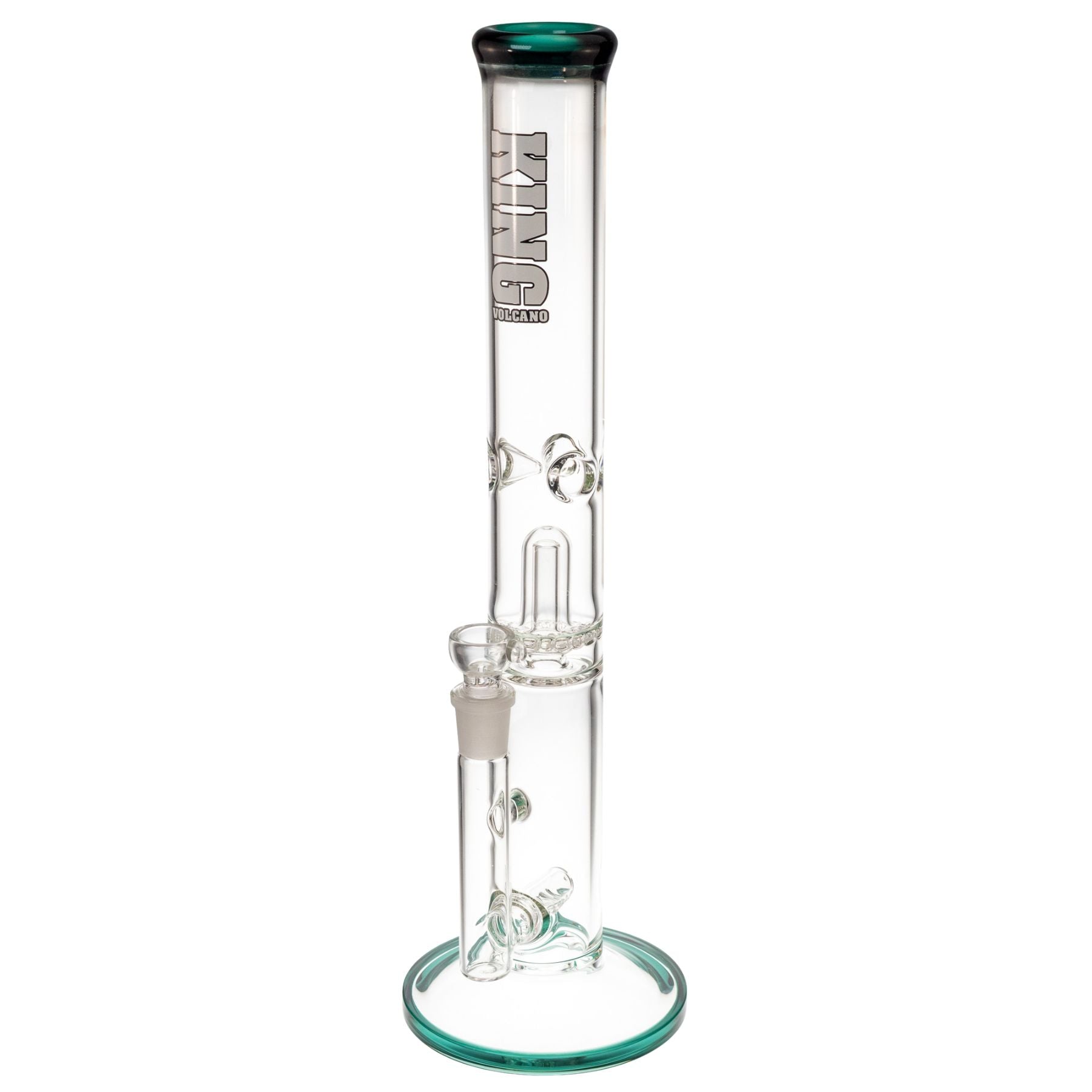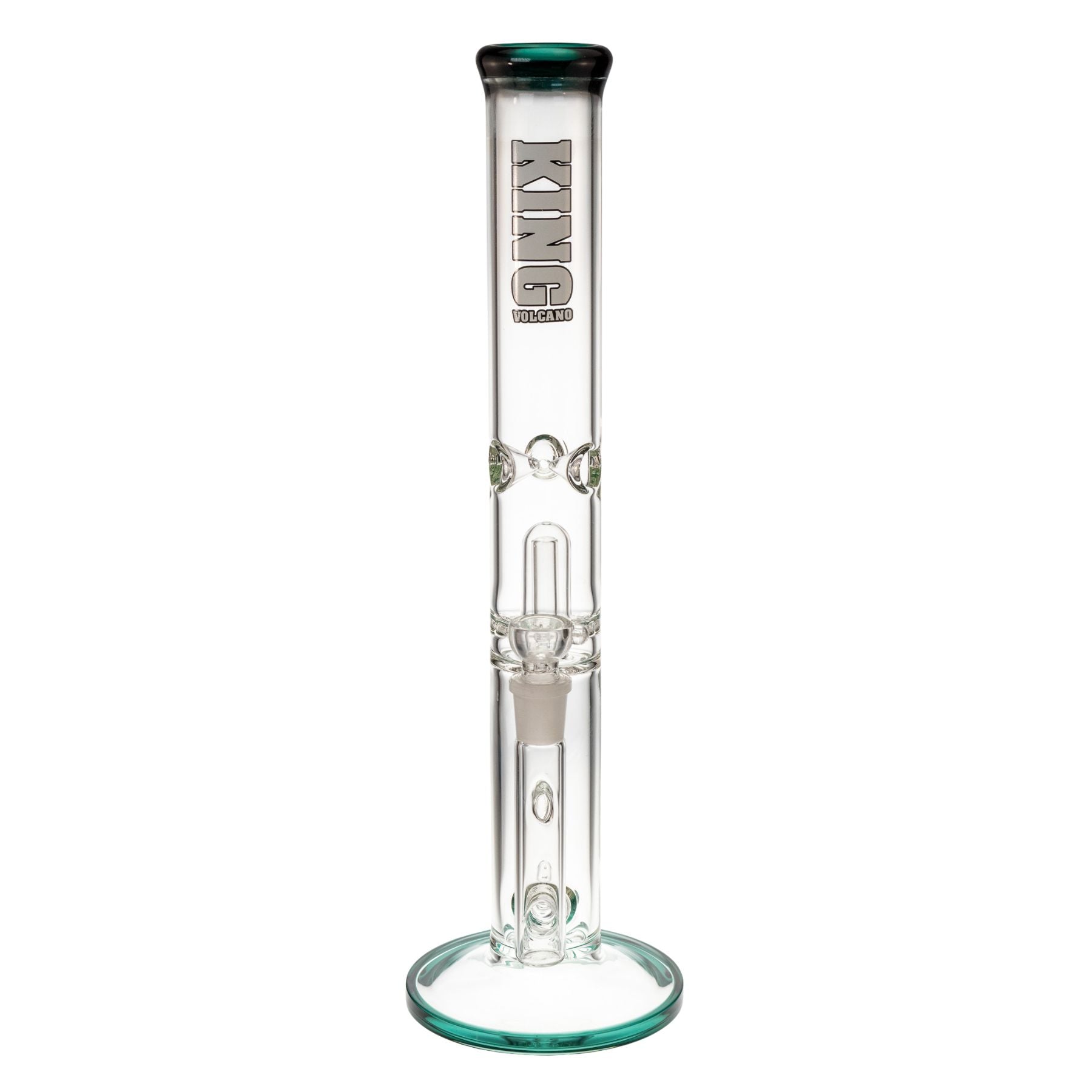 Discover impressive function and craftsmanship with the King Volcano 50mm x 17'' Flare Inline. Standing 17 inches tall with a 50mm body diameter and 5mm wall thickness, this piece is designed for smooth, consistent performance. It features a diffused fixed inline paired with a showerhead ratchet percolator, working together to deliver exceptional filtration and clean, satisfying hits. The three-prong ice pinch allows for a cooler smoking experience, while the sturdy 5-inch base ensures reliable stability. Combining durability, precision, and sleek design, the King Volcano Flare Inline is a standout choice for any glass collection.