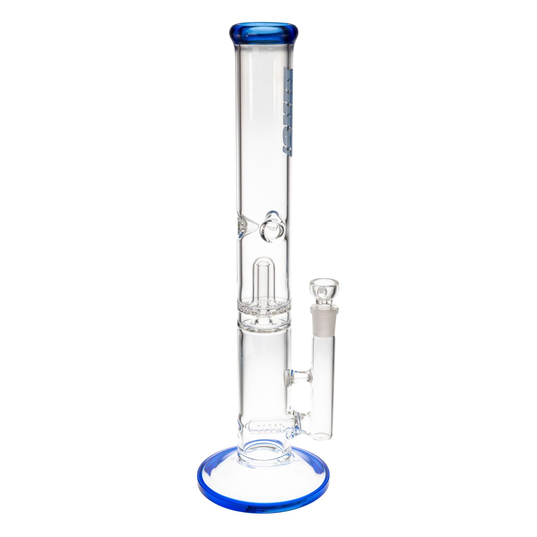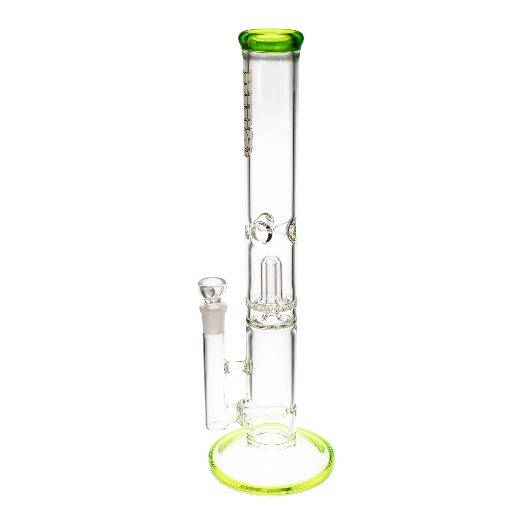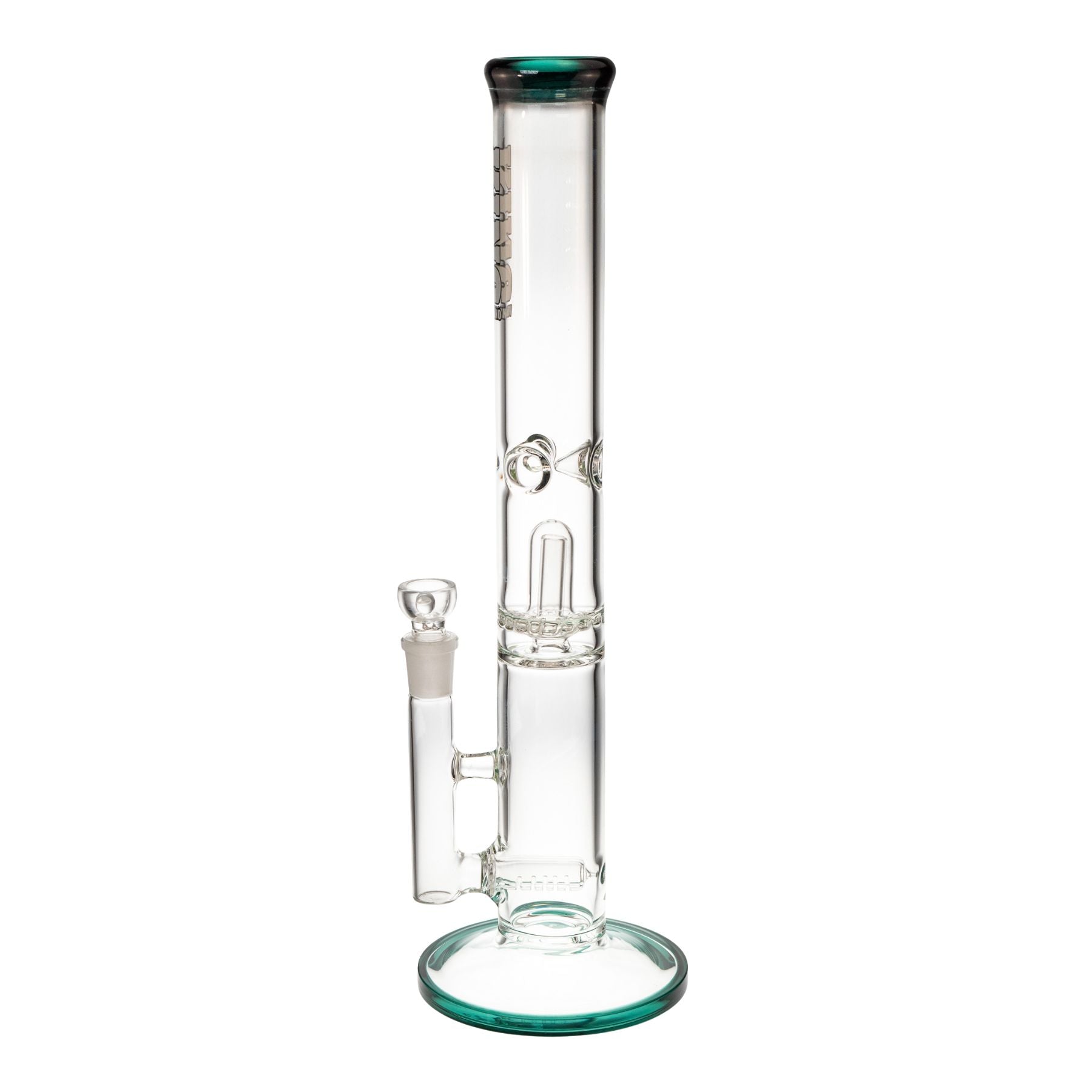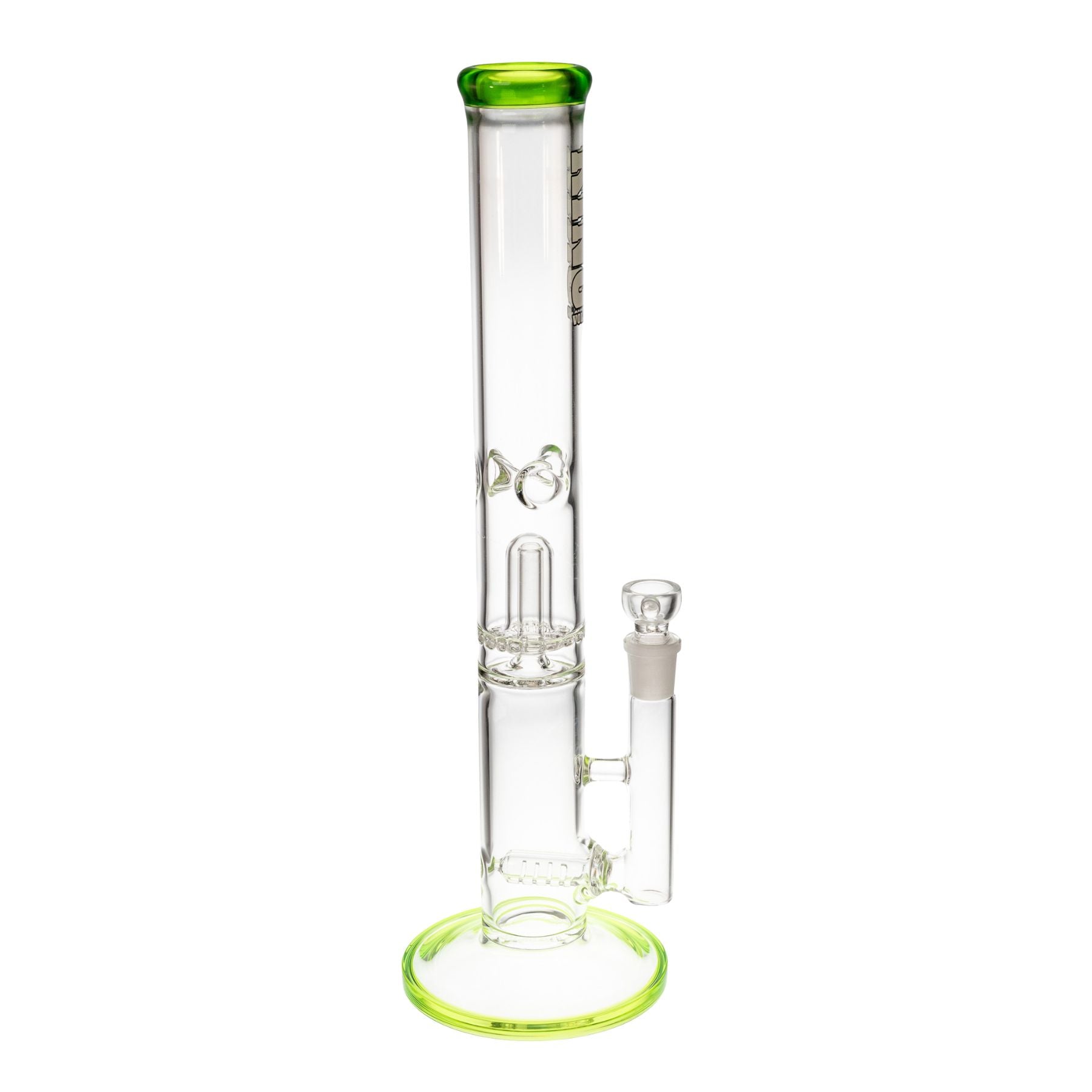 Discover impressive function and craftsmanship with the King Volcano 50mm x 17'' Flare Inline. Standing 17 inches tall with a 50mm body diameter and 5mm wall thickness, this piece is designed for smooth, consistent performance. It features a diffused fixed inline paired with a showerhead ratchet percolator, working together to deliver exceptional filtration and clean, satisfying hits. The three-prong ice pinch allows for a cooler smoking experience, while the sturdy 5-inch base ensures reliable stability. Combining durability, precision, and sleek design, the King Volcano Flare Inline is a standout choice for any glass collection.
