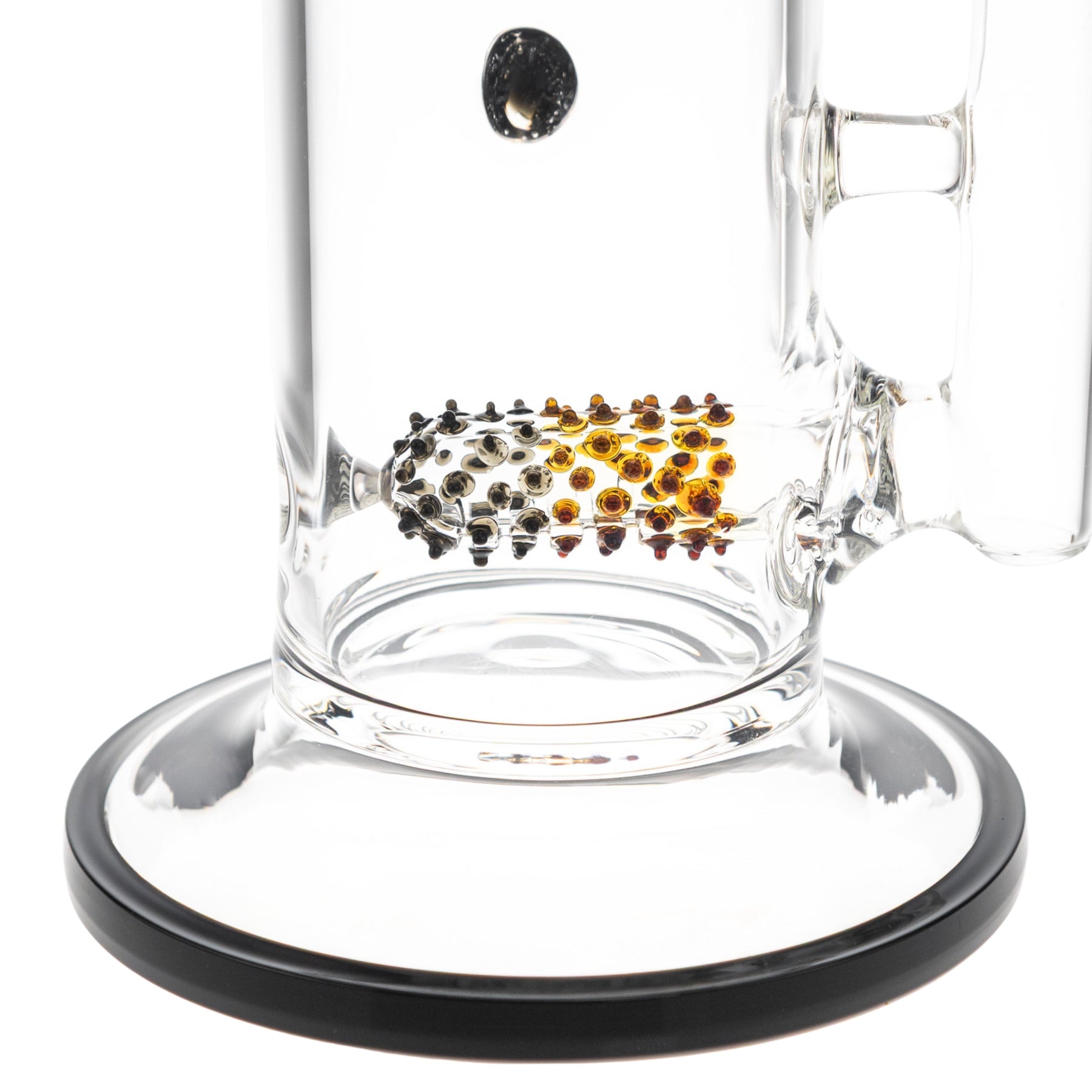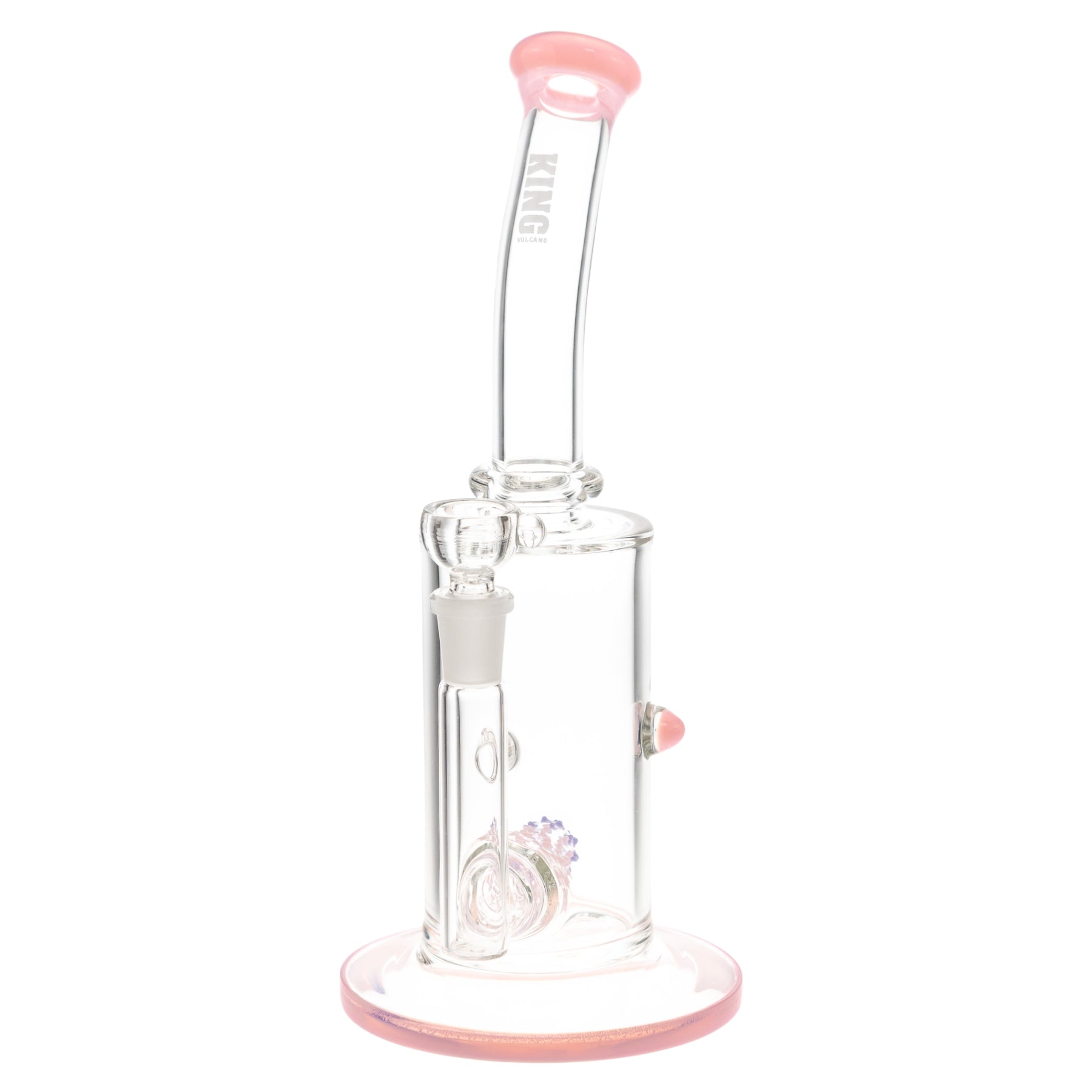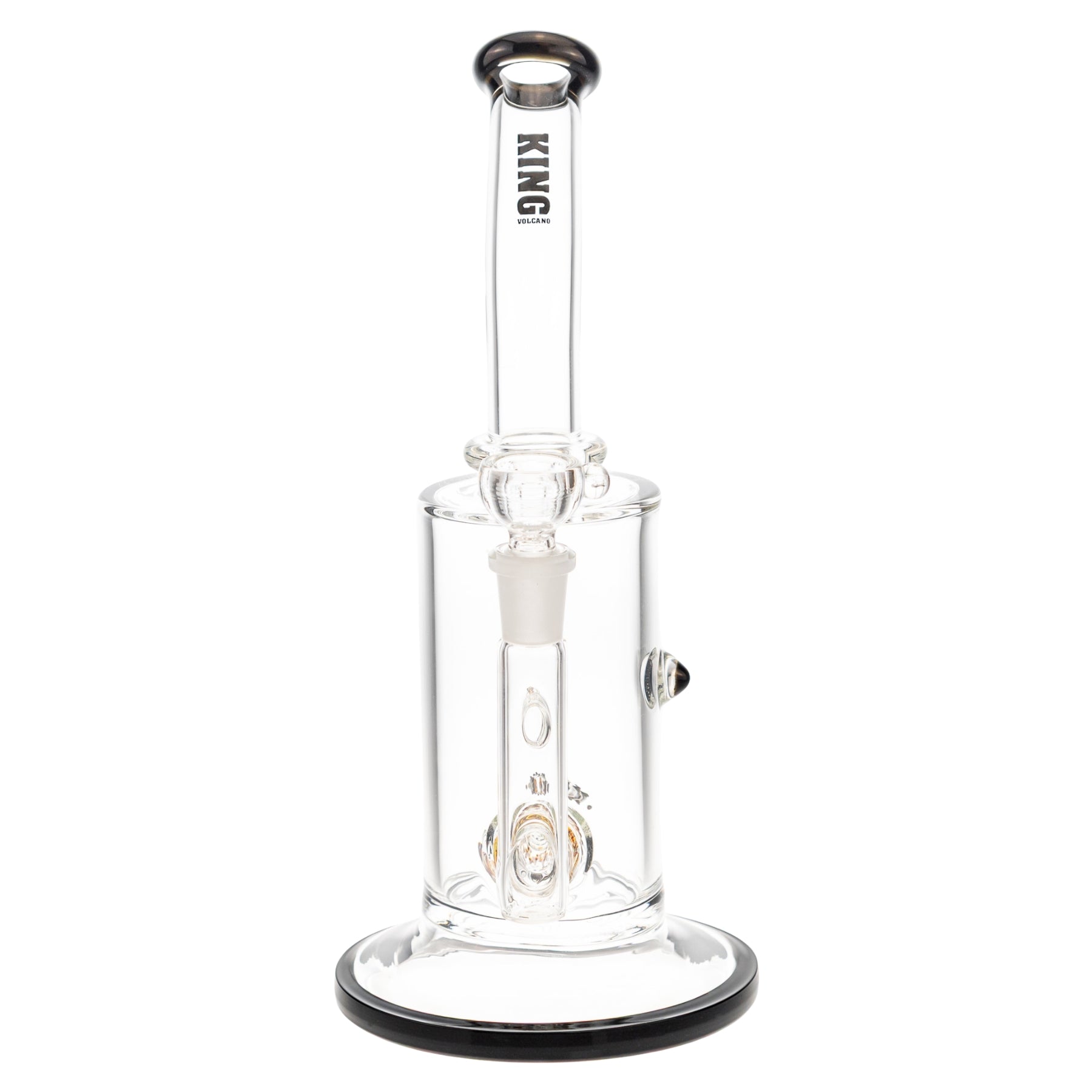 The King Volcano 65mm x 12in Flare Inline Water Pipe combines powerful diffusion with a sturdy, compact design. Made from thick 5mm American glass, it features a fixed inline percolator for smooth, evenly filtered hits. The wide 4.5-inch base ensures excellent stability, while the shape enhances airflow and smoke capacity. Standing 12 inches tall, this piece delivers durability, balance, and premium performance in a clean, functional form.