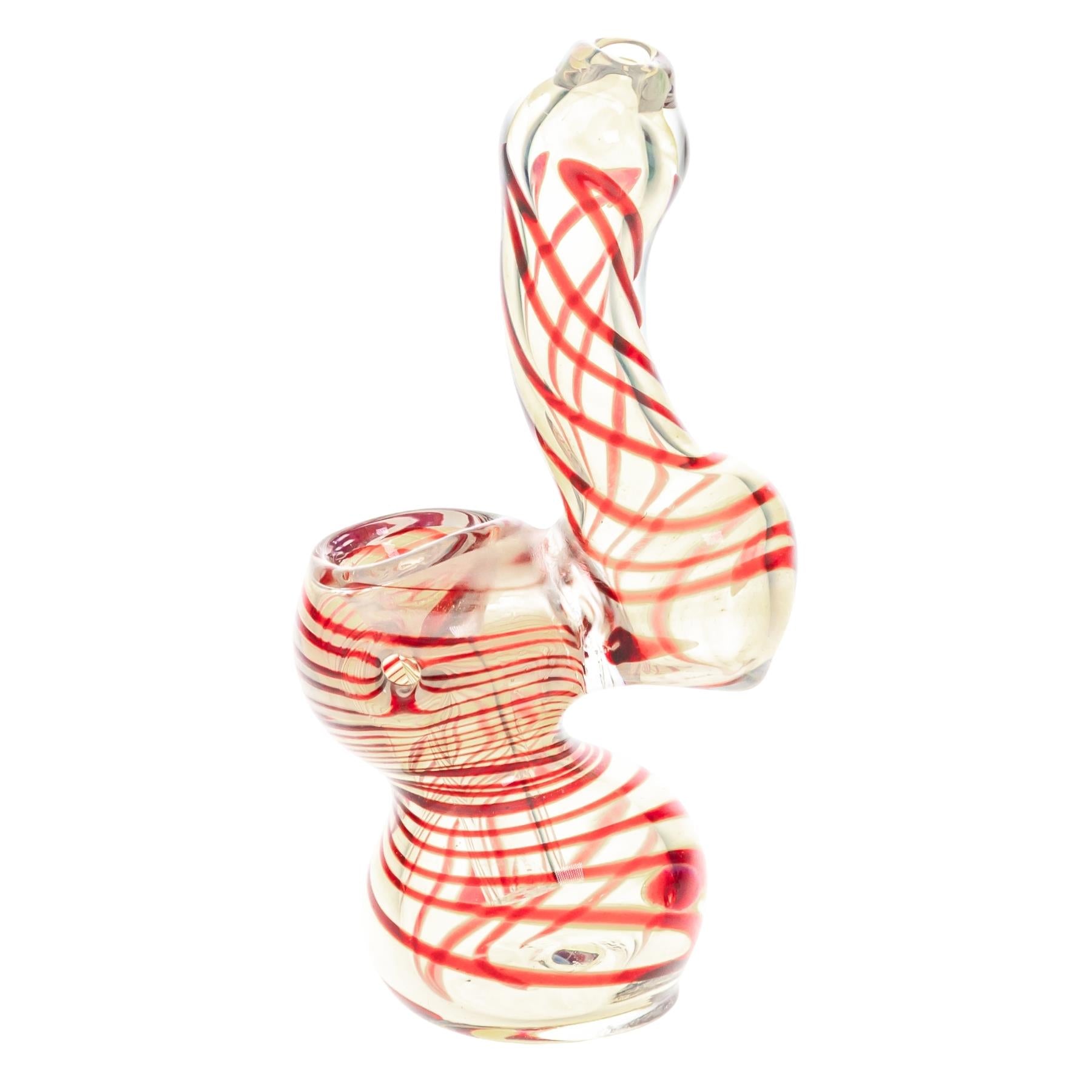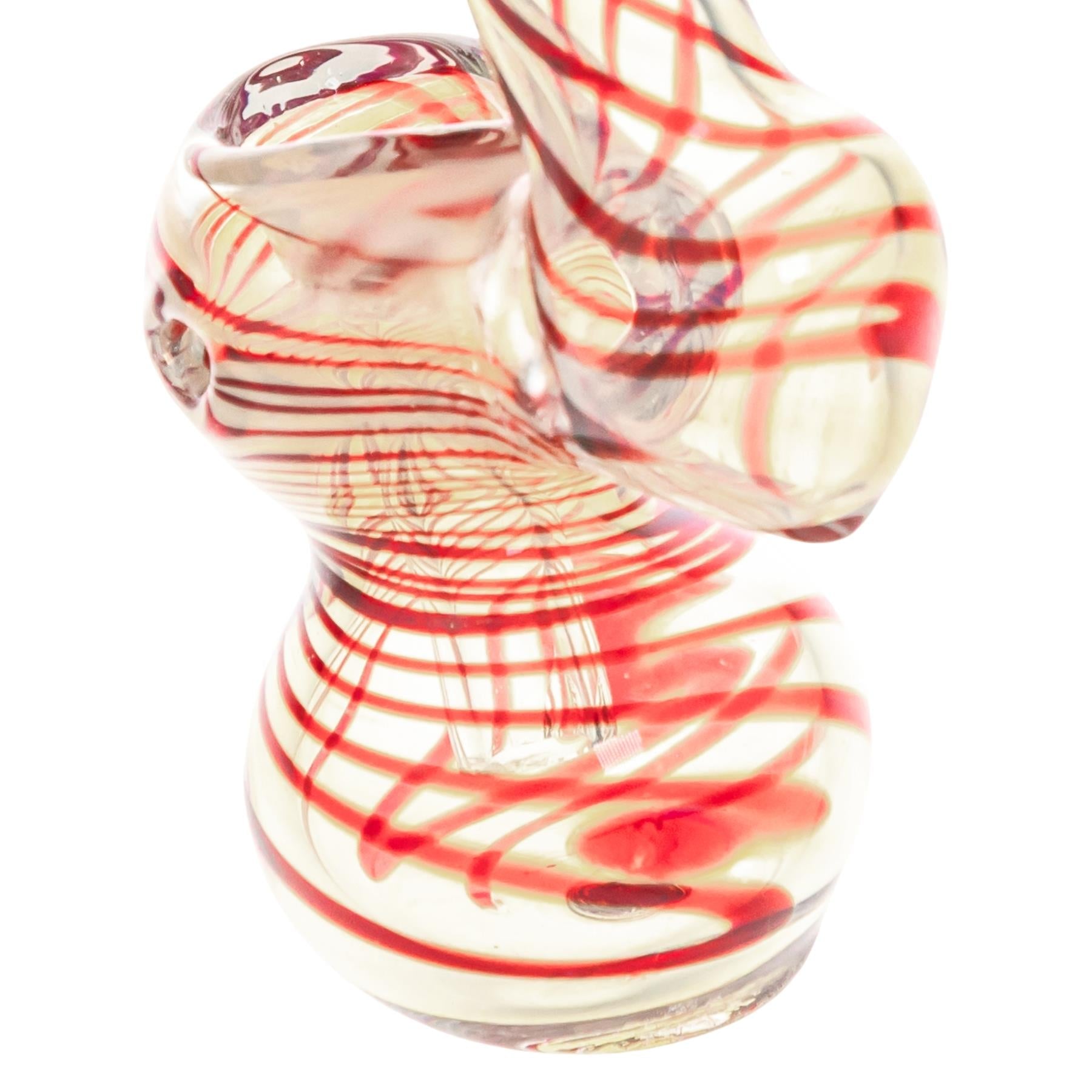 This compact Sherlock-style mini bubbler is crafted from durable, fumed glass that develops unique color variations over time with use. Measuring approximately 4 inches tall, it features a curved neck for comfortable handling and a balanced base for stability. The integrated bowl and fixed downstem design provide smooth, water-cooled draws in a small, travel-friendly size, perfect for discreet sessions or as a collectible glass piece.