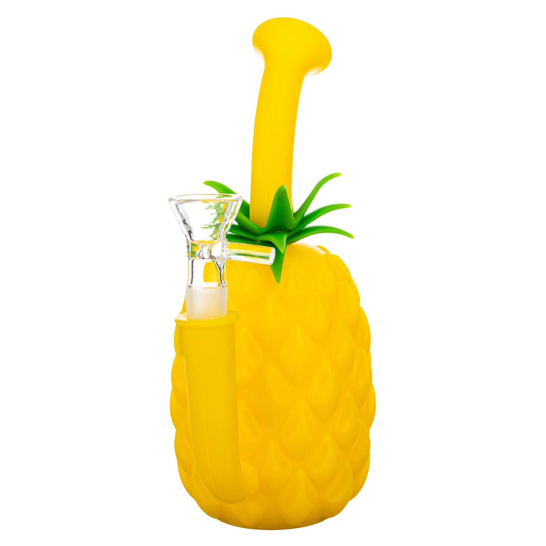 Silicone Pineapple Water Pipe yellow color slight side angle on a white background - Up N Smoke