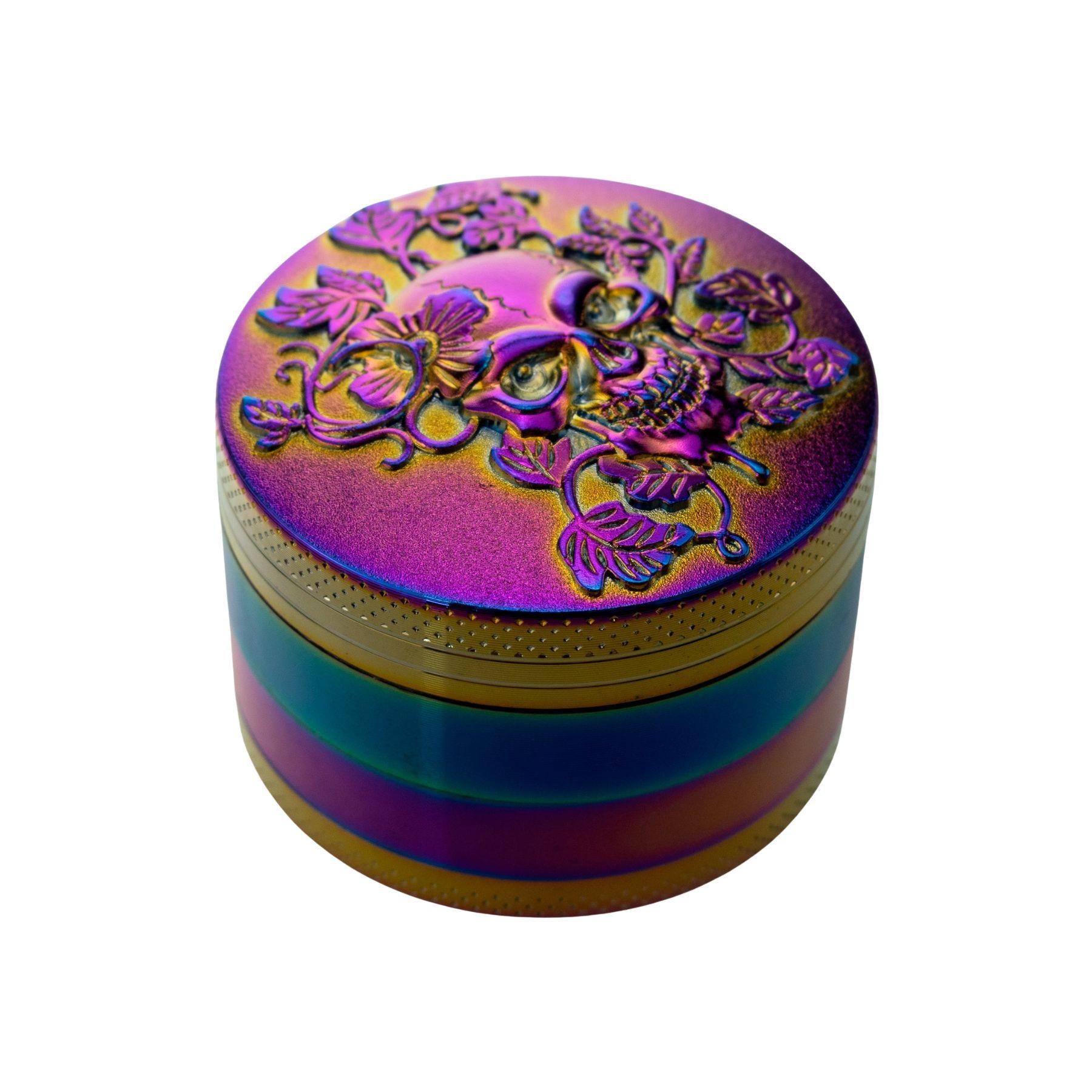 The sharp diamond-shaped teeth make grinding easy, while the layered design includes separate compartments for grinding, storage, and collection. The bottom chamber even comes with a scoop tool so you can retrieve your herbs with ease. Finished with a vibrant sugar skull design, this grinder blends functionality with artistic flair.