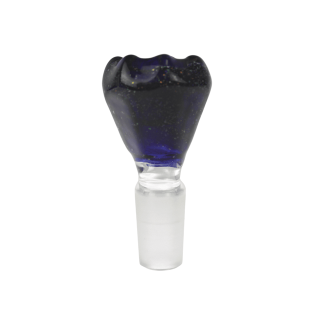 This sparkling galaxy looking bowl was beautifully crafted right here in the USA. The 14mm male bowl features a very dark blue color that is almost black looking that is adorned with crushed opal throughout the whole bowl.