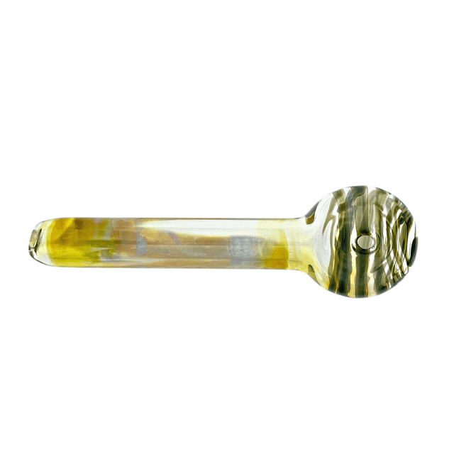 These Jellyfish hand blown pipes have an outside silver fume while featuring a colored spiral design around the clear glass bowl.
