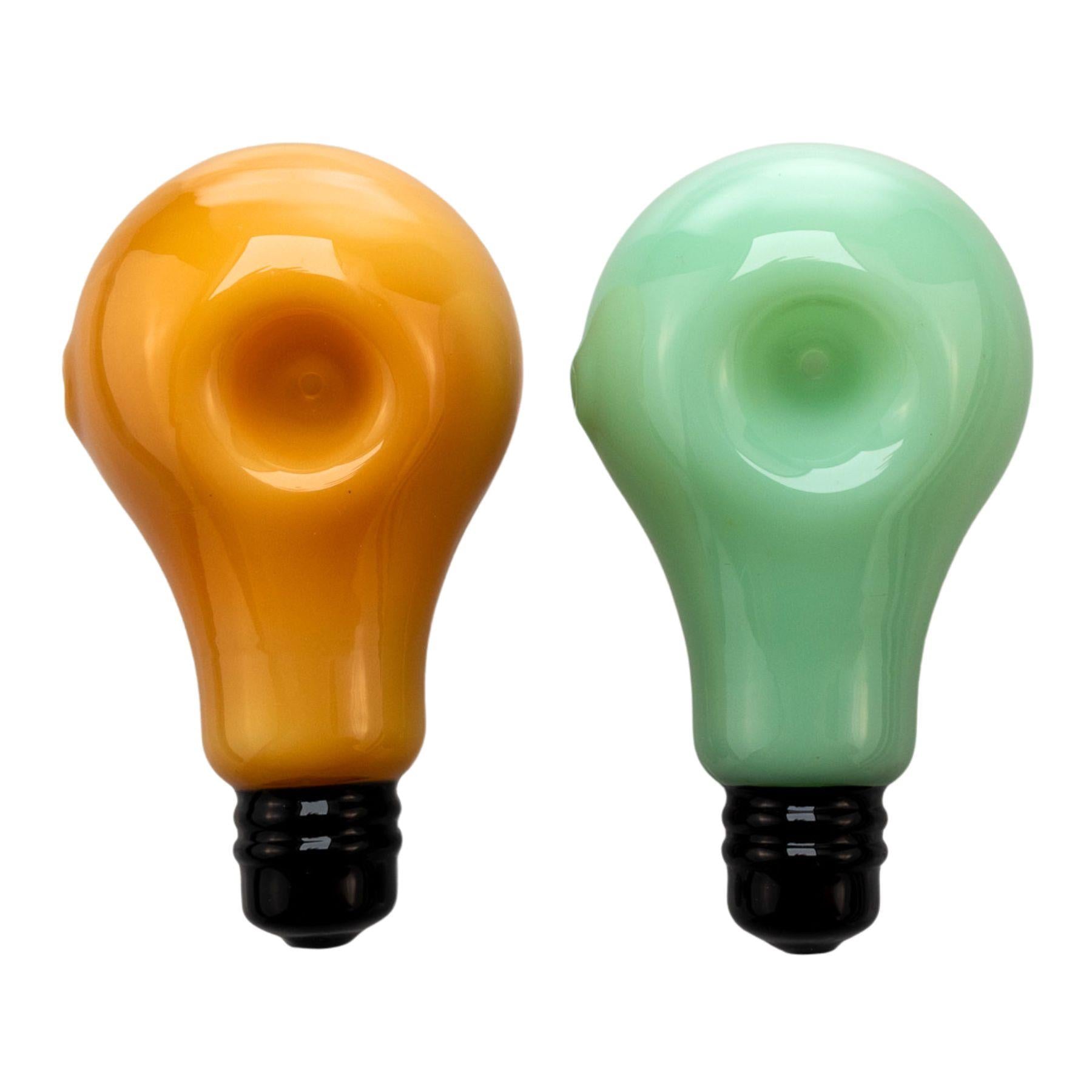 These clever little light bulb hand pipes are sure to brighten your sesh. Each one measures about 4 inches long and fits comfortably in your hand. Available in two luminous colors—warm amber and minty green. Functional, fun, and just the right size for on-the-go use.