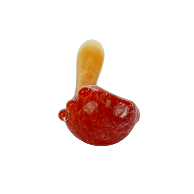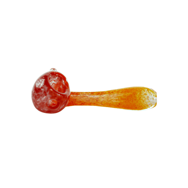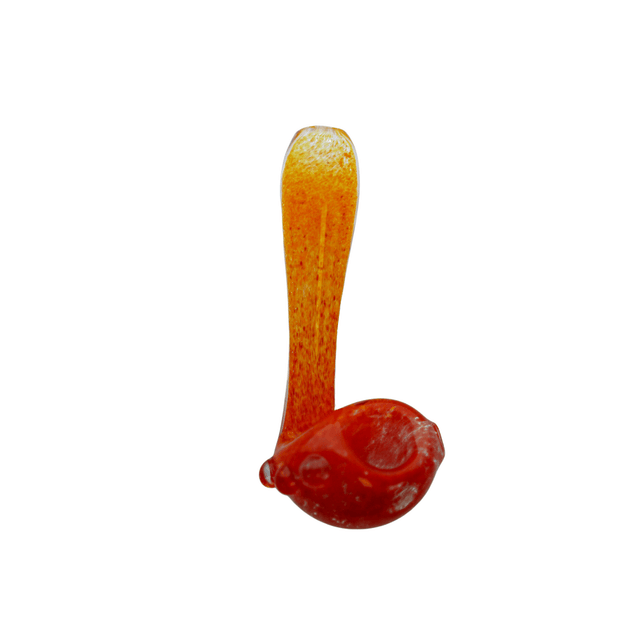 Inside out fire frit faded hand pipe with the bowl hooked to the left.