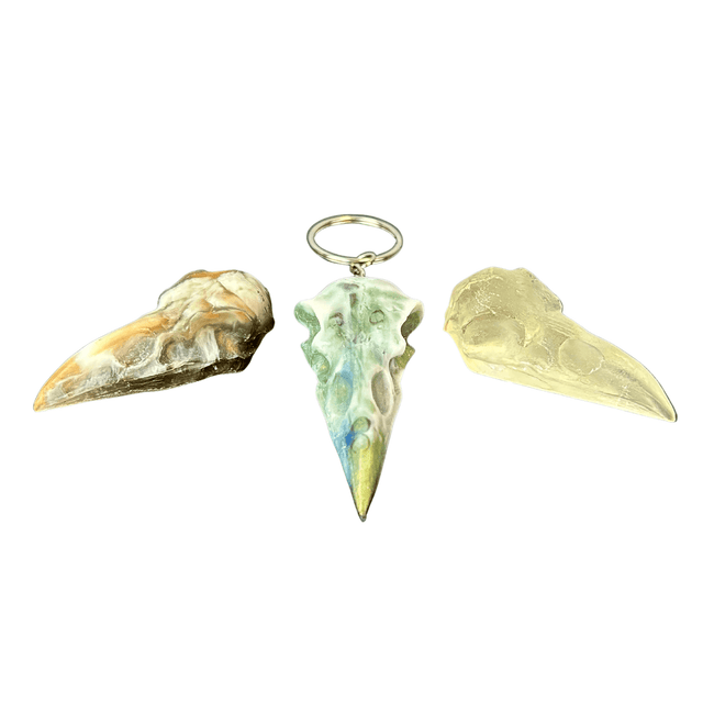 These unique resin crows vary in color variation and can be purchased as a keychain or just a plain crow head perfect for your altar! Take a leap of faith and believe in the color the universe chooses to give you.